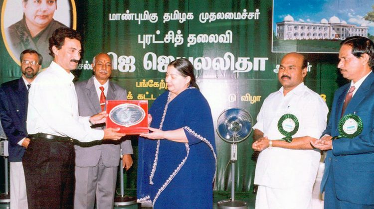 Ar.Oscar Concessao receiving the Citation from Honourable Chief Minister of Tamil Nadu Dr. Selvi. Jayalalithaa For Ambethkar Law Unversity